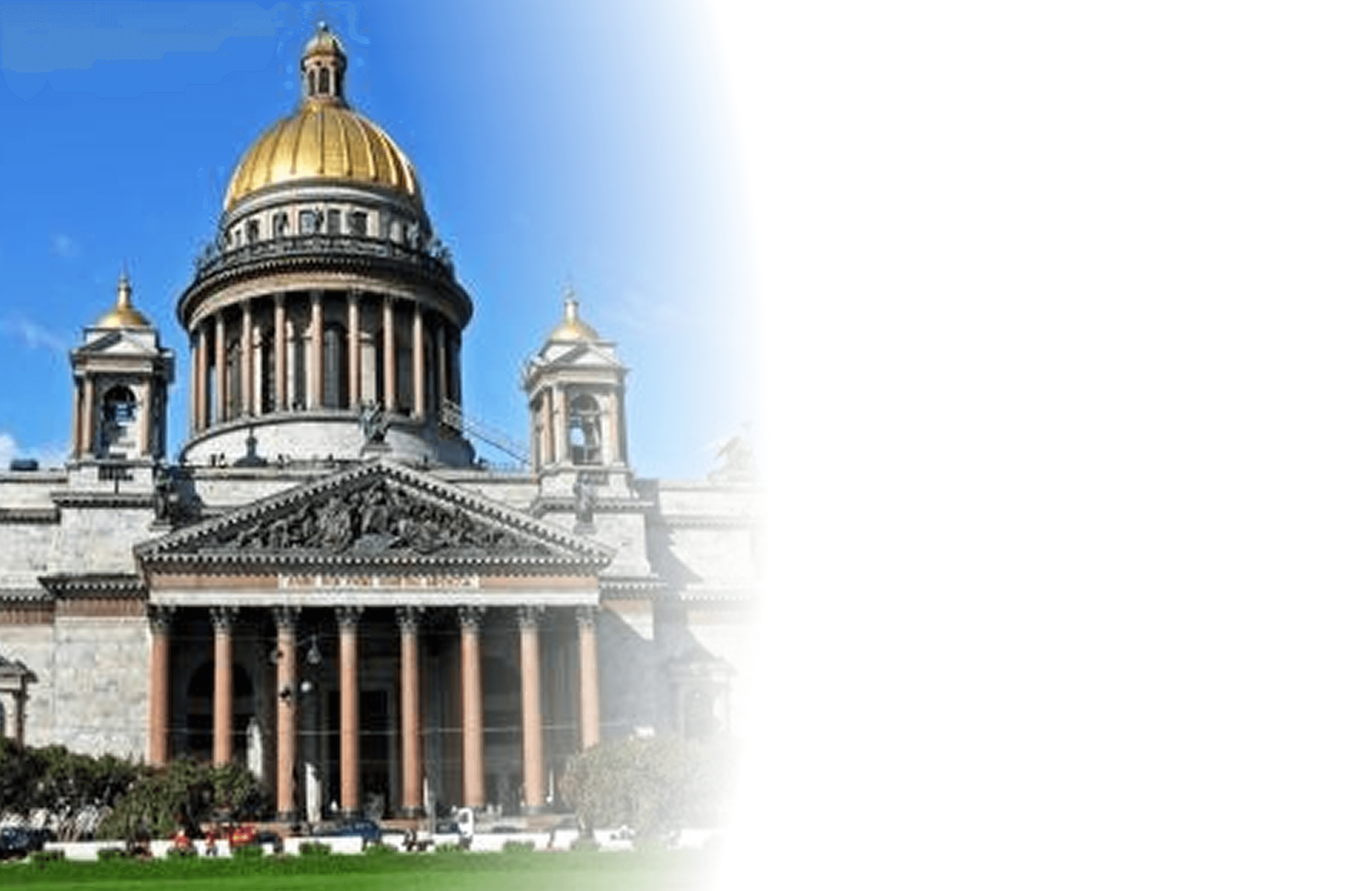 Quý khách tham quan Đại giáo đường Saint Issak. Đại giáo đường được xây dựng gần 100 năm, trải qua 5 đời Nga Hoàng mới hoàn tất. Đây là một trong 4 Đại Giáo Đường lớn nhất thế giới, nổi tiếng với những cây cột đá hoa cương nguyên khối nặng 114 tấn, cao 17 m, với mái vòm có đường kính lớn nhất thế giới. Đại giáo đường này được gọi là bảo tàng đá mầu, vì được trang trí cả sàn, tường, nội thất bằng nhiều loại đá quý, được đưa về từ nhiều nước trên thế giới: lam ngọc của Afganistan, đá khổng tước của vùng Ural, đá hồng, đá xám, đá trắng từ Ý, Pháp…